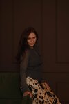 Зал Rossi - коричневая и бежевая стена. Зеленый диван. Натуральная контрастная гамма для глубоких кадров