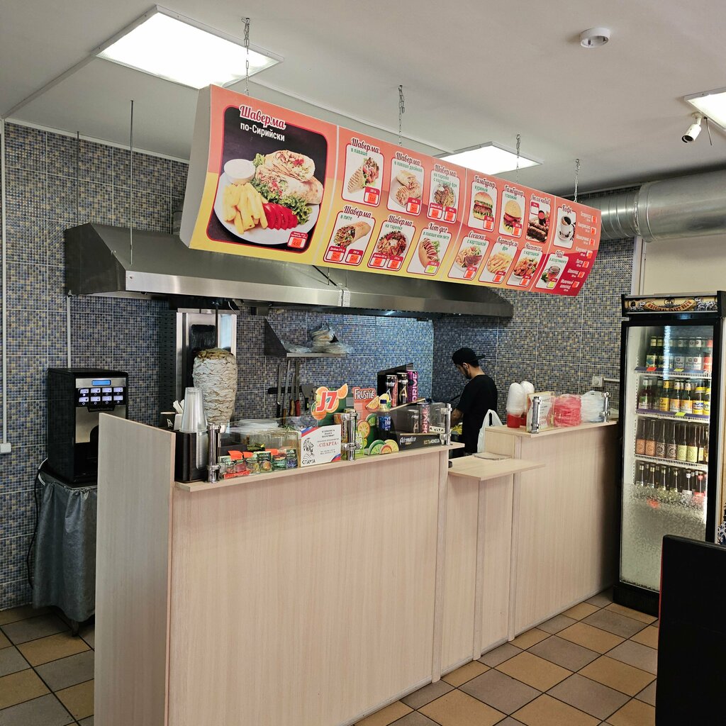 Всем читающим здравствуйте! Могу начать с того, что там очень чисто! Помещение небольшое, но и этого достаточно. Так же еда 10/10. Очень стыдно, не постеснялись на мясе. Соус очень яркий и вкусный, что шаверма получилась очень сочной и вкусной. А также очень сытно вышло. Обслуживание быстрое. Так что всем советую!!!