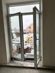 Белый профиль с двухкамерным (3 стекла) стеклопакетом с энергосберегающим стеклом. Поворотно-откидная створка, глухая створка, поворотная дверь с сендвич-панелью в нижней части.