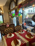 🌐"Bistro Chef Restaurant & Cafe" is located in the old town at the intersection of Mehmet Murat and Hudavendigar, between the tram stops "Gulhane Park" and "Marmaray Station". A good atmospheric cafe in the Turkish style, in the afternoon – quiet, calm, cozy, in the evening – showtime begins: theatrical cooking of national dishes, solemn carrying out of beer glasses on the head, and other entertainments. There is a menu in Russian, some waiters speak it fluently, the rest of the communication is in English-Turkish "dialect". Smiling and unobtrusive staff, and most importantly, fast. However, sometimes they can forget something, being carried away by entertaining other guests. The menu is varied, there is something European, but mostly Turkish dishes. They cook well and tasty. We ordered chicken kebab and iskender kebab. Immediately, an aperitif (appetizer sauces) and pita bread appeared on the table. Iskender was tasted for the first time, as it turned out later, it tastes better around the corner in New Hatay. 🕺If you want to move in the evening, this is the place to eat delicious food and have fun with the showmen waiters. Even the noise of passing trams does not bother, it fits into pleasant smells, general fun and colorful music.