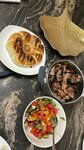 Take this gun (for 120) for two. We ate too much. Very tasty. You can choose acute or not. We asked for a little spice. Delicious sauce and water are served with the dish. We also tried a mojito with cherries. Very sugary. It's like a chemical marmalade. We also tried the salad - it's not bad. Pita is served to him.