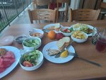 I had a rest at this hotel in September 2023. They settled in long before 14 o'clock. I got a good room on the 4th floor of the main building. Everything worked. There were minor problems with the drain in the toilet, but they were solved quite quickly, on the second day, by replacing the drain device. The refrigerator froze decently. LCD TV, but there is only one Russian channel, TNT, so I hardly watched it. In two weeks, the linen was changed only once. There were 3 pieces of soap in the bathroom, no liquid gel was found. Meals for 4 people. Twice a week, there was grilled fish, twice - giblets, again, on the grill. Once they gave a shawarma, cooked here. There was chicken, cutlets. Salads of chopped cucumbers and tomatoes, various greens, several types of complex salads. I liked only one that looked like Olivier. I checked, the products in this salad are fresh. Baked peppers and eggplants are also delicious. I did not eat soups, as well as watermelons, which were unsweetened in the second week of my stay. Although, at the beginning of the stay, watermelons were delicious - cold, sweet, exactly what you want in the heat. The bar is minimalistic. From the beginning of breakfast, you could only drink tea and coffee. The rest appeared later, at about 9.30. The choice is small. Personally, I liked the soda that the bartender poured. There was no point in drinking other drinks in the heat. There are many questions and wishes for the beach. Tourists themselves cleared the entrance to the sea so that they could safely enter and exit the sea. Sun beds, about 30 pcs. Not all of them were intact. There are a little more mattresses, so some tourists laid them right on the rocks. It's interesting to swim with a mask. There were shells, crabs, and once a small sea turtle swam in. In the evening, the sun sets early behind the mountain and the beach is in the shade, you will not sunbathe. But, this is a common phenomenon for Beldibi. Beach equipment: awning, sun beds with mattresses and 2 trash cans. Clearly not enough for a comfortable stay. We had a rest together. Over the years, we rested in other hotels, wrote off and decided to relax in this inexpensive hotel. Thanks to this, we did not get bored: we went dancing, walked around Beldibi, went to Kemer, went to the Turkish Maldives. This, in our general opinion, is the most interesting excursion of those offered by street travel agencies. 20 dollars and almost the whole day on a trip and sailing on a yacht, entering different bays and swimming in the open sea. They also gave us lunch there. In the evening, usually, most tourists scattered to the surrounding shops. The music for dancing was turned on from 21 to 23 hours. Sometimes a lot of vacationers gathered and it was fun. But, often, there were no people who wanted to warm up after a "hard" day. Therefore, having your own company is a big plus for a varied vacation. In general, I recommend staying at this hotel if you are: a sociable person, steadfastly tolerate a small selection of food and drinks and believe that the main thing on the beach is the sea, for which you came here.)))