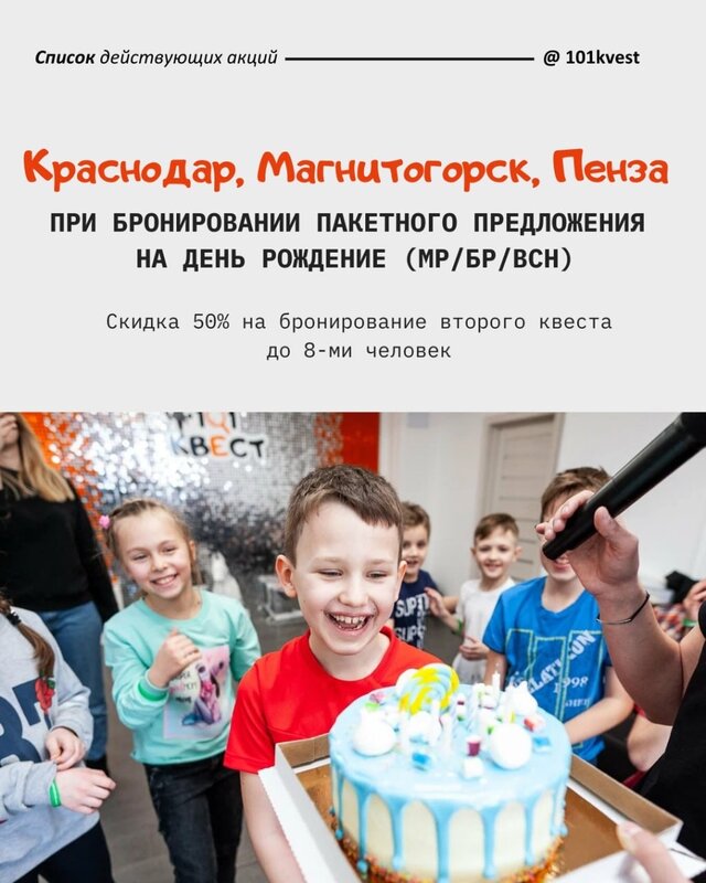 🎁 Наши акции в 101 квест до конца января 🎁 1. Лучшее решение для корпоративов и школьных праздников! "Мартофля" в честь 23 февраля и 8 ма...