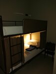 В номере 4-ре двухъярусные кровати. Для Вашего комфорта предусмотрены шторки на кроватях. Индивидуальный прикроватный светильник, розетка и полочка. Для хранения вещей есть вертикальная напольная вешалка и под кроватный ящик.