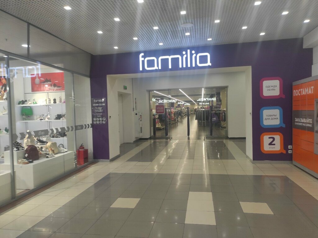Мой самый любимый магазин. Из всех магазинов Familia в городе Уфа, это самый лучший. Всегда приятно заходить: большой выбор товара, все аккуратно разложено и весит точно по размерам, указанные на табличках. Персонал очень вежливый, на все вопросы подсказывают и помогают с поиском. На кассе рассказывают об всех акциях. Примерочные всегда чистые, это для меня очень важный момент. Очень радует, что ассортимент постоянно обновляется. Процветания моему любимому магазину.
