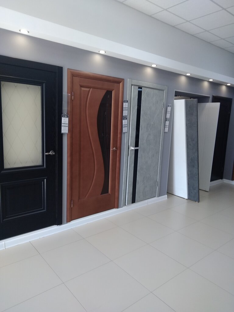 Большой выбор дверей и комплектующего, а цены по сравнению с другими магазинами немного ниже. Есть место для парковки. Рядом с конечной остановкой маршруток