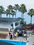 I will not strictly divide the pros and cons, everything will be described in the course of the story. Get ready, there will be a lot of letters. As for the contingent, 90% are compatriots, or at least from the former USSR, with rare exceptions, Russian is spoken everywhere. Over the weekend, there was an influx of "aborigines", i.e. Turkish citizens came to have a "cultural" rest, but the situation did not get worse, only the people in the dining room increased. I'll say even more, when in the 19th year I stayed in a cooler hotel in Alanya, which was attended by more than half of the representatives of eastern and central Europe, I liked it less. They have a different mentality... plus a language barrier, different orders. So the presence of a large number of compatriots did not bother me at all. Rather the opposite. And the Turks on vacation behaved very well, with dignity. The staff, even at the reception, understands Russian with great difficulty. The maids and staff in the dining room don't speak any foreign languages at all. But Ildar, who invites you to SPA treatments for a lot of money, speaks excellent Russian. At the reception, we were immediately offered a quieter room with a good view. They didn't lie about the good view, but there is a separate "song" about the "quieter" ... Here, in this and other nearby hotels, such a state as "quieter" is basically impossible. Everywhere, from all sides, there is music, a show program, and so on. For this reason, the door to the balcony always had to be closed, since the sound insulation was excellent. It was a good thing that the air conditioner was working fine, but airing in the heat below forty degrees is a dubious occupation. The air conditioner, as in many Turkish hotels, only works while the key card is installed, i.e. while someone is in the room. That is, while you are not in the room, the air conditioner does not work. But the air conditioner works well, the direction of air flow can be adjusted, so you can leave it overnight without fear of freezing and catching a cold. The room itself is spacious, there is more than enough space for two people. The bed is comfortable and comfortable. There is a TV. But it's better not to turn it on... I won't explain the reason. The bathroom is quite decent, but the water pressure is weak, and the drain in the shower cabin does not work well. There are no sets of shampoo, soap and other things here! Only liquid soap in dispensers and that's it! There are no kettles in the rooms! There is no cooler on the floor either! There is always water for drinking in plastic cups in outdoor refrigerators, and if you need boiling water for tea or something else, you can always pour it from large thermopots in the dining room and bar, but you have to leave the room to do this. What I didn't like about the room was that it was essentially a shared balcony with its neighbors, divided in half into two parts by some kind of indistinct grid. And the balcony itself is very small. Wi-Fi is only for money, 10 dollars per week. It's not cheap, we could have included it in the price of the tour. But it's cheaper than buying a local SIM card. After a week, the Wi-Fi has not ended, which is good news.… He catches Wi-Fi throughout the hotel confidently, but during the evening show, when there is a large crowd of people in one place, there may be communication problems. I would like to note separately that you should not pay in rubles in Turkey. The cunning Turkish brothers in mind use such an exchange rate – that you can stay without the last pants. Use only dollars or euros in calculations. The territory of the hotel is small and cozy. There are beautiful flower beds everywhere, manicured lawns that are being tended. The hotel is only three floors high, but there is also a ground floor, where there are rooms that will be good for people with limited mobility, as they have individual exits instead of balconies. Due to the low number of floors, climbing the stairs to the third floor is not difficult. You don't have to wait for the elevator like big and tall hotels. At the same time, there is an elevator, you do not have to carry suitcases up the stairs. Three pools, two large and one for small children. In one pool, which is located near the dining area, almost no one swims. The depth is 1.3 m. The water temperature is very comfortable, neither cold nor hot, it is not heavily treated with bleach and other reagents, so you will not get irritations. There are many toilets on site, but they may not always be clean. As I wrote above about the noise, after 3 p.m., music is blaring from all sides in all hotels, so the best way out is not to hear the cacophony of different music – it's to be "in the center of events" and take an active part in competitions. Surprisingly, the show program at this hotel is very good. You won't be bored. Morning exercise at the pier. After lunch, there's either aerobics, yoga, or belly dancing. At 16:00 near the beach and the lawn bar, there are games of either bocho, archery, or darts. It's a lot of fun. After dinner, the show program. First, they entertain the children, it's the same for them every day, "Aram-zam-zam", "Sigma-boy" and so on. Every other day or so, the children are given ice cream at the end of the program. After 21 hours, the show is for adults, or to be precise, for everyone. There's a decent variety here. During our stay, karaoke, belly dancing, live performance of Russian hits (not bad), and a fire show were held. The latter is especially fun. The animators are great. The "main role" in animation is played by an animator, a heavily tanned man (macho, in a word), and I never found out what his name was. He gets along great with the kids, and he hosts a fire show and discos himself.… Great job! Two girls from the animation team are also trying very hard. They walk around the territory, invite people to events. At the same time, whose name is Milana speaks excellent Russ