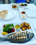 I liked the restaurant, the atmosphere is pleasant, attentive and friendly staff , service. Assorted meze and a large, airy flatbread are served deliciously. Fish and squid /grilled octopus were taken from the menu - everything is fresh and well cooked. Regular fish / grilled sea bass -but it turned out very tasty! We were sitting downstairs , with a direct view of the embankment and yachts , and an even more beautiful view from above , but we didn 't want to climb the stairs . I suddenly liked the dessert -chocolate cake -delicious , not cloying .. in general, we did not regret that we accidentally went to this place, I would love to come back here again someday!
