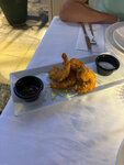 On the recommendation of the hotel guides, my husband and I went to this restaurant for a birthday celebration. We arrived on time, but were greeted with a frown, and although the table was booked at the hotel, we "searched" for our table for a long time among the same completely empty tables. As a result, they were planted on the edge, away from the fans, actually in the sun. They couldn't recommend anything, they just gave out a menu, and they simply ignored my question about the yield of the dish in grams. I have already asked in complete confusion: is this a dish for one or two people. More slurring. He doesn't understand Russian, like. Then he answered me in Russian: "200-250 grams." In general, we canceled all previously ordered dishes except the first one and did well! They brought a plate with a pile of rice and French fries.. it kind of went to a hot tray with 3 boiled rubber shrimps, 3 mussels and rings of squid baked in tomato or tomato paste, it's just bewildering.. While we were trying to try it all out and decide whether to stay or not, we started moving umbrellas and chairs and tables right behind us with a bang. Well, we immediately decided to leave. The celebration did not work out. During the whole time that we were there, another Russian family came in. That's it. The rest of the tables remained empty, although the guides assured that in the evenings "grandfather" had nowhere to fall.. I don't know what we did to displease them. Or is it that they have such an attitude towards everyone except "their own"? Going around the corner, we went to another restaurant, had a delicious and sweet meal. The owner said that "my Grandfather" has a lot of empty show-offs, they were also sold very expensively, despite the fact that almost everywhere on the pier the food is almost the same. In general, we do not recommend going to the grandfather. walk along the shore and come across other lovely places where there is less pathos, but more warmth and taste!