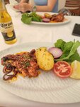 We were at the restaurant on the recommendation of the guide. We took two servings of octopus and a mix of seafood cooked on a roasting pan and a glass of beer each. The octopuses are delicious, the mix is a bit overdone, but overall not bad. Everything cost 3,400 liters.