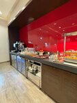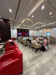 It was an average lounge, but it still brightened up the wait for your flight. The chairs are comfortable, the staff is caring, delicious coffee, tea, anyone who wants can eat and even drink something stronger, in my opinion there was a whole list of alcoholic beverages. One couple was unpleasantly surprised.... A girl in a hijab, a man to match her, put their booted feet on the table, turned on the TV show at full volume, they occupied a large table, the guests who did not have enough space asked permission to sit down, but he simply did not let them in. Probably, the staff should have made a remark.
