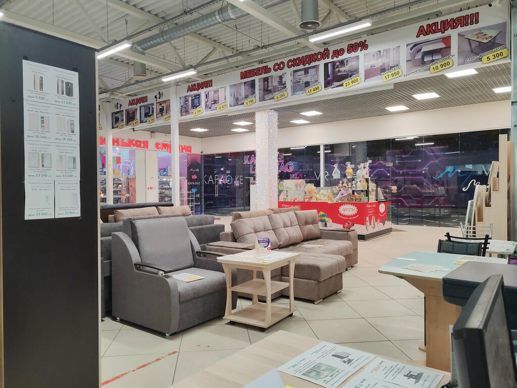 Хороший магазин. Есть мебель в наличие и под заказ. Хорошее обслуживание. Продавцы с удовольствием подскажут и расскажут.