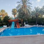 We had a rest in Asdem at the end of August 2025. I will say in advance that I have been to Turkey many times, in different hotels, I have not seen this anywhere yet))) The hotel is a youth hotel, but be prepared for starved Turkish men and the same ladies ... The contingent there is really frightening)) The hotel itself is divided into three parts, the main building, where there is a restaurant, a noisy swimming pool, hangouts and reception. The second one is across the street, we lived in it, it's quiet. The most beautiful and the newest of all, as we understood it. He also has two pools, one of them with slides. The best of all! But there is no elevator, and no one will carry suitcases for you))) And the third block is just some kind of tin, where everyone is initially accommodated, and then, for an additional fee, they are already accommodated in more or less adequate rooms. They are isolated, the rooms are old, small, hot, and the bathroom is dirty. In short, a hollow darkness. But for $ 80 you will be quietly moved to a nice room with a beautiful view. Positive: Delicious food, varied menu A clean pool Minuses: The beach is terrible, everything is like sardines in a barrel, even in the early morning, the sunbeds are dirty. The staff is not polite, maybe only to Russians like that))) We didn't even visit discos, miss the hotel every day, etc., it's all vulgar, ugly, not stylish. It was like being in 2010. The evil grandmother gives only 1 tortilla per person, and she can also yell) The pool bar is tasteless, we only ate in the restaurant, there are no questions about it. Although the space is really small, dirty tablecloths and appliances.... In general, price = quality, I would not like to return here anymore. I won't advise you either.