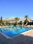 We stayed at this hotel in September 2025. We had booked a 4-bed "Family" room, and as a result, we were settled into a small room with 3 full beds and 1 cot, in building B. We were shocked. The building is old, terribly dirty, including in the room, the balcony is scanty, overlooking the pool and the roof where discos take place at night. I had to shake my nerves before we were moved to another building. As a result, we lived in building C, in a full-fledged quadruple room with a nice balcony and simply unrealistic views of the pool and mountains. There is no elevator in the building, but we lived on the 1st floor, and we didn't care. The sea is across the street, 100 meters from the hotel. There are 3 small pools on site, one of which has slides, but the slides are open several hours a day. The territory is not large, but clean and cozy. Buildings C and D are quiet, and all traffic is near Buildings A and B. The hotel is home to a large number of Russian tourists, and especially tourists who seek the attention of Turkish men, of whom there are also a lot. It's sad to see all this, but everyone has their own ideas about rest. In principle, such a picture is not only in this hotel, so you can skip this fact. But still, the hotel is more youth than family friendly. The food is not bad, there are a lot of dishes to choose from, fruits, sweets, salads, pickles... You won't stay hungry, but it's still kind of monotonous. It starts to get better in a few days. The rooms are cleaned every other time, you need to ask for a change of towels. Water is given only once upon arrival. And I really missed the kettle in the room. It's a three-star hotel, I don't know why it has 4 stars. And most importantly, do not take guided tours from the hotel guide. The price tag is doubled! There is a tour agency around the corner where the price for the same excursions is several times lower))) And if you walk along the embankment, it's even cheaper there!))) For example, the guide had the same tour for $99, the tour agency for $55, and the embankment for $30, we were shocked. Don't be fooled!)