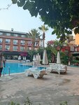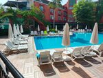 We just got back from the hotel. I can't say that everything is bad and I didn't like it, but I'm not thrilled either. The hotel is budget-friendly, he knows it himself and hence all the consequences... At the top, it was correctly written that Russians are not liked in the hotel, they are treated with respect. But in terms of Russians, most of the hotel. There are a lot of Turks, there are Ukrainians. There are very few foreigners who probably know the level of the hotel. We arrived at the hotel at 6 a.m., we were held until 2 p.m., we were not given a room, we were offered money. We had a standard room, they gave us an economy room. And they wanted to move into the furthest buildings, Building E, so they had to swear and show the paid category. I didn't like it, but they gave me a room in building D. The territory of the hotel is not bad, it is cleaned. But the restaurant is a different story. Local cats walk in it in droves. There are many of them!!! When you see them on the hotel grounds, it's cute, but when they're on a neighbor's plate, it's creepy. That's the only way to shut down this hotel. It is not known what the observer is watching at the entrance. The food is good, you will be full. But cockroaches were spotted in the restaurant, and when the visiting couple started arguing about it, it was clear how much the administration wanted to hush up the issue faster. There are no questions about the sea. It's amazing!!! During the 8 days of rest, I was slightly worried only once. But since there are a lot of people, it's a little cloudy near the shore, you need to sail a little further, you can use the buoys. The water density is excellent, it's comfortable to swim! BUT there are a lot of questions about the beach. It's small, the sun beds are old, dirty, crammed together, very uncomfortable! Very! It's stoned everywhere! It is inconvenient to enter the water from this hotel, it hurts your legs, and there are large pebbles. We went into the water from a nearby beach. The Internet is terrible! The paid one is the same. Will I return to this hotel - no! Do I recommend it? For young people, perhaps. There is a disco, there are a lot of Turks, hunters of young girls, there is animation near the pool. For couples and couples with children - not here. But the sea is cool!