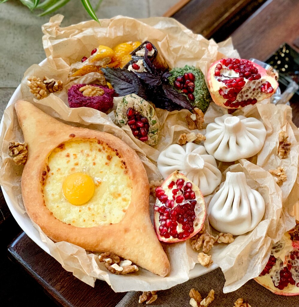 Заведение понравилось. Отмечали день рождения, обслуживали хорошо. Интерьер симпатичный и уютный, с множеством деталей. Заказывали ассорти шашлыков, салаты, закуски. Еда вкусная, порции достаточные. Особенно понравился салат морской, добротная порция с настоящими крабами, креветками, кальмарами, икрой. Шашлыки бомбические, мясо мягкое, очень хорошо приготовлено. Лобио в горшочке с сыром необычное, часто в ресторанах идет обычная вариация без сыра. Пиво "Натахтари" хорошее, коктейли средние, мохито очень горчит. Приятные цены за такое качество еды. Вечером была живая музыка. Из минусов можно отметить только отсутствие горячей воды в уборной, и пара позиций на стопе из тех, что хотели заказать.