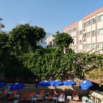 In my opinion, the hotel does not even have 3 stars. No one speaks Russian or even English at the reception! They speak only Turkish, they have to communicate through a translator, who often translates clumsily, as a result it is difficult to explain normally (( At first they tried to put me in a room with a broken lock, then they said that they would wait 2 hours if I wanted another room. As a result, they moved into another room: the view from the balcony into the wall, there is not even a trash can in the room (they brought garbage bags to me and told me to collect garbage in a bag), the furniture in the room is old, the bed is hard as a brick, only soap and shower gel from soap accessories. Thank you for at least having hot water! I stayed for 3 nights, during this time there was no cleaning, towels were also not changed, only 1 time the garbage was taken out. But the biggest problem of this hotel is the food. There are no meat and fish dishes at all, not even an ordinary chicken! I had to eat too much rice, pasta, and vegetables. There are no sweets either, only some kind of pudding was exposed, it tasted like some kind of chemical powder was diluted. And by the way, they put the hot stuff on themselves, in portions. You can only put salads on your own. The only advantage of this hotel is its location: 10 minutes to Cleopatra Beach in one direction, 10 minutes to the port and bar street in the other direction. The hotel will only come down for the night, I will not return to it for rest!