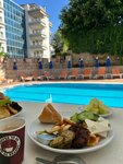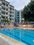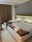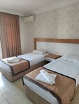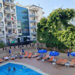 The hotel is clean, constantly being cleaned. Very friendly staff, smiling, wishing you a pleasant appetite, asking how you are. When making a request, they try to help immediately. The dishes are clean, but sometimes they come across with chips. Drinks are poured into glass glasses at the bar. Beer, white and red wine, fanta, cola, sprite.I liked the beer, we didn't try the wine. We didn't have enough pastries for breakfast, an omelet every other day. 2 types of cheese, salads with vegetables in different variations, similar. For 11 nights, fish was given 1 time, and so mostly stewed vegetables, sometimes with minced meat. You won't be hungry, but without frills. You can take water from the cooler, you can put it in your own bottle. There was a clean pool, there were enough sun beds for everyone. It's 15 minutes to the sea, you can go to Migros on the way, "cool down". Beach towels are not provided, with their own. Among the disadvantages: the restaurant does not have air conditioning, there are no fans, it is very stuffy.. You can't sit at the table for a long time, it gets sick. The Internet is on reception, but it's also stuffy. The hotel is located in the center, next to Mavi (right across the street), Waikiki and the Barn 5 minutes walk away. Migros on the way to the sea, not large, but quite everything is there. The hotel has 50/50 Russians and foreigners. The atmosphere is very friendly.