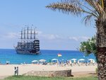 A normal city hotel in the center of Alanya. Positive: *location in the city center, you can walk to the port, the Red Tower, the funicular. Migros is not far away. It takes about 15 minutes to walk to the beach at a relaxed pace; * normal diet, I've never been hungry (I don't eat meat, so I can't evaluate food from this point of view), and for side dishes - rice, potatoes, pasta, chickpeas, fresh and stewed vegetables, fruits- watermelon, apples, melon, pears; from sweets I ate only halva for breakfast. For those who care, there are no hot dishes for breakfast, hot food for lunch and dinner is served in portions, but if it is not enough, then you could always ask for more; *Friendly staff; * the room, of course, is without frills, but on the whole everything was fine; * the plumbing in our room was working properly; * Free Wi-Fi (caught on the ground floor) Minuses: *there was only a towel rack in the bathroom (not convenient); *there were no drying ropes on the balcony (they were drying on the balcony railing); *there is no air conditioning at the reception and in the restaurant (we were at the end of September - the heat subsided, it was comfortable. But in the summer, I think it's unbearable there). I would have gone back to the hotel again. The tours were bought on the street. (you can buy a yacht at the port itself, it will be cheaper). Dollars, euros, and rubles are exchanged for lira. We didn't get into the Red Tower itself, because the entrance can only be paid with a card. The let's fly app was buggy, I paid with it only a couple of times.