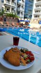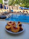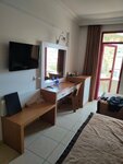 Everything is fine at the hotel, we like it. Cleanliness is everywhere. Cleaning is daily, the tables are cleaned immediately, no flies, no other living creatures)The food is always fresh! A lot of vegetables, herbs, fruits: watermelons, melons,grapes, peaches, figs.Delicious cheese.We had enough of everything. Well, maybe if men are meat eaters, one meat dish daily may not be enough. There is also one sweet dish, there is no choice.I'm indifferent to sweets, it didn't bother me.Dry wine, red,white from bottles,soda sprite,cola,fanta + juices, such as "yuppie",coffee,tea.The rooms are clean and cozy. The staff is all friendly, friendly, helpful. I somehow grabbed 2 plates-I couldn't carry them away. So their boyfriend ran up, asked where to put the plate, and dragged an umbrella to the table so that the sun would not shine😳The location is excellent, there are many shops, entertainment nearby-a water park, some kind of excursion children's tram passed, funiculars, a museum, a port, a lighthouse, a theater, an archaeology museum nearby, many shops, exchange offices.Promenade along the beautiful embankment, bazaar, excellent location.The Internet is free, but it catches weakly, in our room on the ground floor I caught it in the toilet), and so, only at the reception.But you can send an SMS, you can't upload too many photos.We had 2 rooms, for four people. My husband and I got a cozy room with a view of the pool, a phone in the room, we could call each other.In general, I am happy with the hotel, especially for the price of the tour that we paid.