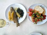 The location is excellent, the very center, there are a lot of shops nearby, 10 minutes to the sea (sometimes annoying), there is somewhere to go, take a walk in the evening. The port is 10-15 minutes away, almost opposite the hotel there are bus stops in both directions, around ATMs, rental cars and scooters. The food is as simple as possible: soup, pasta / rice / potatoes change every other day, meat is a rare phenomenon, nuggets, cutlets of unknown origin, occasionally fish, beer / soda as in all 3, but the bar is up to 23-00! Fruits: watermelon, melon, sour grapes and sometimes peaches, all this is mostly given out in portions, from sweet halva only for breakfast, for dinner / lunch pudding or something indistinct that looks like cookies. Of the minuses, they can move into a promo room with a view of the wall, "wooden" mattresses, a smaller room in general (there is a difference in the distance between the bed and the mirror in the photo) and a poorly closing door, after long arguments and conversations, only on day 4 they were moved to a normal room with a view of the center. street. Also, the downside is very poor lighting in the rooms, if you find fault) The rooms are washed and cleaned every day, there are no problems with water, the air conditioner and refrigerator in the room work fine, but in the reception area it is stuffy and hot, as in the "dining room". There are a lot of Russians as well as foreigners, in general, a quiet, peaceful hotel for spending the night / washing up.