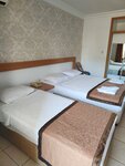 Overall, the hotel is good. one of the advantages is the convenient location, 10 minutes to Cleopatra, near cafes, souvenir shops, shops, market, bus stops. The hotel itself is small, but I find this a plus. Also, I really liked the staff, who will always say hello to you, wish you a pleasant appetite, chat, and always help if there is a problem. We arrived late at night, when dinner had long been over, and we hadn't eaten all day. The staff organized a small snack for us in the form of fruits, poured us beer and wine, although the bar was no longer open, in general, they did everything possible so that we would not remain hungry. They mostly speak English, but they understand the basic phrases in Russian. The hotel is clean, the rooms are good. They cook delicious, but the only thing is that there are few meat dishes, mostly a lot of vegetable salads, stewed vegetables, fruits for lunch and dinner. They also gave desserts, but they are quickly disassembled, and then they are not laid out additionally, if you come an hour after the start of dinner, most likely they will no longer remain. There is Internet at the reception and in the bar, it works well when there are few people, even well. Music plays during lunch and dinner. I have good impressions about the hotel and I think that if we ever come to Alanya again, we will stay there.