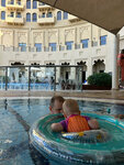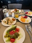 The hotel is beautiful and spacious. There are a lot of staff, and there is always a porter at the entrance, and at the pools, and on the beach (constantly sweeping the paths, constantly watching the swimmers), and on the floors almost always someone cleans, all polite and smiling. The food is excellent, although after 3 days the children began to miss the simple food. Meat/chicken/fish are available for lunch/dinner, but they are most often seasoned, either grilled or in sauce, but super for adults! There is always a large selection of bread, juices, pastries, fruits, vegetables (fresh, grilled, stewed) and salads, 5-8 side dishes and hot dishes. Soups are just bad. There is a pool bar with free water/lemonades/coffee. By the way, the coffee in their restaurant's coffee machines is pretty good. The only thing was that we didn't get very comfortable rooms, they always had high humidity, nothing dried, and the windows overlooked the city. For a leisurely rest - a great option.