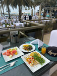 Delicious food. Especially salads and pastry shops. There are no complaints about the work of the staff. There is an Alcohol market 5 minutes away, where people come from neighboring emirates, where there are stricter laws on alcohol consumption.. Among the disadvantages is a small area with a bunch of sun beds, occupied by Russian tradition, towels. The entrance to the sea is gentle, it is convenient for kids.