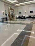 The hotel is located away from the center. As Leonoblast for example. By taxi to Dubai 40-45 minutes. By the way, you can order a taxi at the exit of the hotel, the waiting time is a couple of minutes. There is a free bus from the hotel twice a day to Dubai Mall, you need to make an appointment at the reception in advance. From the outside it looks like a palace, inside there is white marble in the lobby, very beautiful decoration. They give you a bottle of water for free, you can drink a welcome coffee with dates. There is a cafe on the 1st floor. Check-in from 13-14h. Very polite staff, luggage is brought to the hotel, at check-out it can be stored in a special room. The room has a towel, bathrobe, soap and soap accessories, hairdryer, kettle, refrigerator, tea and coffee, air conditioning. The bed is soft, the TV does not work. The room as a whole does not look like a five-star hotel, everything is old, but cleaning every day, clean. The food on the buffet is not very good, the choice is modest, for three. Its very clean beach and swimming pool, everything is monitored. In general, I recommend it for a trip, it is suitable for the first visit to the UAE.