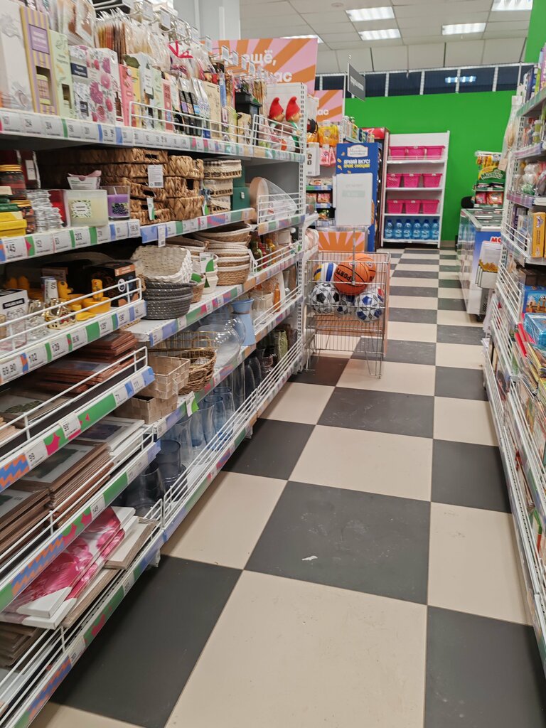 Магазин чистый, с хорошим ассортиментом товаров для дома. Здесь можно найти продукты, канцелярские принадлежности и немного одежды. Ценники присутствуют. Качество товаров высокое. Однако, обслуживание могло бы быть лучше.