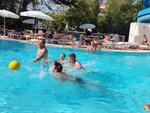 (Oct 25) The hotel is filled with mostly elderly Germans and former Russians who left for Germany 30 years ago. Many Germans smoke - all the open tables are equipped with ashtrays. Therefore, the main language with the staff (and with the environment) is German, the waiters understand the main products in English, they know English (a little Russian) at the reception Delicious and varied food, there is always something barbecue (vegetables are especially delicious), from hot meat dishes there is always poultry, cutlets (meatball), once a week a Turkish night with shawarma and ice cream cake, once something Japanese (shrimp, rolls). The waiters' service is very good-fast, average in the rooms (towel change, cleaning of obvious sand, folding sheets with a pattern, paper) - it is not critical for the main rest outside the room. There are many tables outside, which is very pleasant during meals) The furniture is worn out by time, but falling apart, the air conditioner/ small refrigerator is working, the TV is not turned on, there is a balcony (small in ordinary and large in family rooms) in the rooms. Activities : water aerobics, darts, 1 slide long for 4 hours a day, there was no loud disco, evening show (for an amateur (German)). I got to Oktoberfest - they brought me a barrel of unfiltered beer, nut chips, and fried "German" burgers. Everyone was having fun. The beach is a stranger by bus 10 minutes (20-30 minutes on foot). There were several beach areas to choose from, but all from other people's hotels / restaurants, including all drinks for extra money. But all the main beach infrastructure is free. My 5.5-year-old child found a common language with the same German boy at the pool and slide.