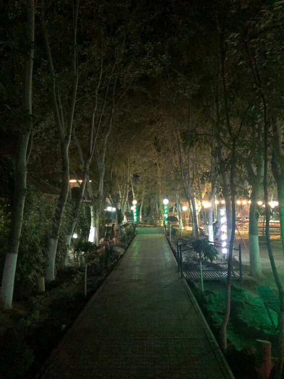 The place is not very big. A small playground with an old swing. However, there are a lot of trees, there is a place to hide from the heat. There are many outdoor cabins and separate rooms with air conditioning. There is a small restaurant with air conditioning. The cooking here is average. There are delicious dishes, and there are those that are not worth taking. Shurpa is cooked very tasty in small pots. But it's better to give up too much bell pepper from the Uighur lagman. In general, you can go in, have a snack and walk among the trees.