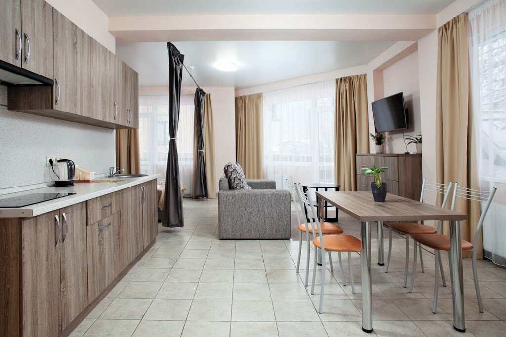 Комфортные и уютные апартаменты в с.Эстосадок. Во всех апартаментах есть хорошо оборудованная кухня и собственная ванная комната с феном и бесплатными туалетно-косметическими принадлежностями. Кондиционер, телевизор, бесплатный wi-fi, диван-кровать.