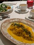 Я заприметила этот ресторан давно. Всегда красиво украшенные фасады безусловно привлекают внимание. Я почти ежедневно проезжала мимо,а тут с раннего утра уже кипит работа. Не могу не отметить этот факт. И наконец наступили обстоятельства это заведение посетить. 1. Красивые девушки дружелюбно встречают у входа. Однозначно плюс. Быстро разместили. Хотя была пятница. 2. Меню отличное. От равиолли с крабом в восторге. Официанты кстати отлично знают меню. 3. Интерьер 🤩лично я обожаю лепнину, масштабные многоярусные люстры и камин. 4. Обслуживание хорошее. Лишь один нюанс меня все таки «разозлил» (темперамент у в меня покруче,чем у скандальной итальянки 😁) Это ожидание. Заказали два лимонада и ждали почти 20 Минут. Но лимонады конечно вкусные. Ок. Проехали. Хотя нет. Сдачу ждали столько же. Ну кто понял жизнь,тот не спешит 🥰 В общем,место хорошее. И если есть желание вкусно поесть под итальянскую музыку, Вам сюда.