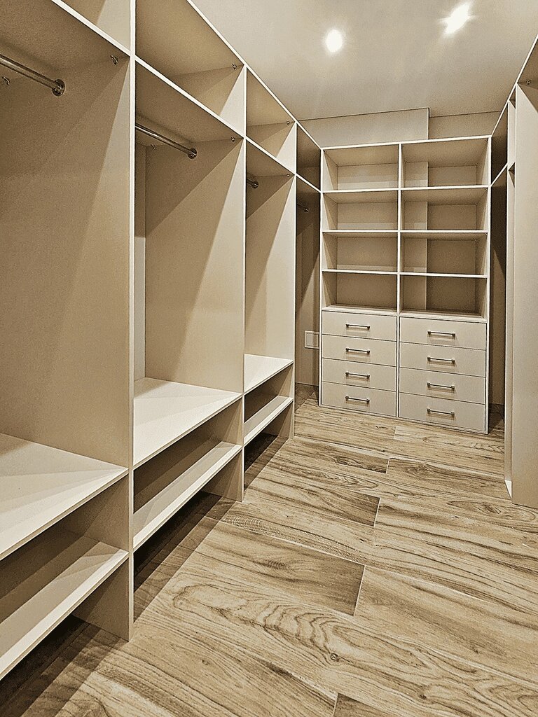 Я в восторге от гардеробной. 1. Очень круто было работать на этапе проработки проекта, тк мастер давал рекомендации как будет лучше чтобы не стукаться ногами и все прметсилось. Много деталей ра которые я бы сама не обратила внимание 2. Идея с розовыми стенами под серую гардероьную тоже была сформирована мастером 3. И мы самый восторг, что команда смогла заморочится и найти полочки для каблучков как у Carrie Bradshaw Сборка тоже супер!
