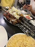 Lamb shish kebab with veins, there is no expected juice and the characteristic taste of marinated lamb. There is no smell of smoke... just meat, salted and grilled The liver in the shell is overcooked, dry, there is no juice, the shell is simply burnt. The onion is simply chopped, without vinegar, not peppered. The waiter is a young girl, just takes the order, does it quickly...but in the end, they just brought the ordered barbecue without bread/ tortillas, without sauce....with a chopped clean onion .. Somehow, this is not how I imagined a barbecue in such a cool "Barbecue Factory" outside...