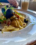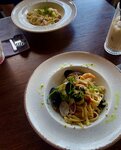 Случайно зашли в это место и остались очень довольны. Замечательный официант Руслан, который ответил на вопросы по блюдам, все очень четко отработал, интересовался все ли понравилось и действительно чувствовалась забота о нашем комфорте. По еде заказали Карбонару и пасту с морепродуктами. Все свежее, вкусное, ароматное, в меру по специями и готовности. Все как положено. По подаче вопросов нет. Пасту точно советуем попробовать. Из напитков взяли айс-латте с малиновым сиропом, так же никаких вопросов, все в меру по крепости и вкусу. Много интересных позиций в меню, которые хочется попробовать. Рекомендуем данное заведение и обязательно вернемся. Благодарим!