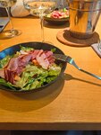 Еда обычная, пицца вкусная. Салат подвёл, какое-то непонятное блюдо, выглядело не аппетитно и вкус не доработан, ощущается только свёкла. Чай не плохой, но почему -то отбитая крышка у сахарницы, очень не приятно, ведь заведение имеет хороший рейтинг. Обслуживание вообще никакое, официантов не дозавешься, хотя не чем не заняты, стоят у барной стойки в ряд. Салфеток на столе нет, посуду грязную не убирают, приходиться каждый раз ловить официантов и просить что-то. Обычный бар, больше желания посетить нет.