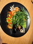 Отмечали здесь ДР. Первое впечатление: Приятный дизайн интерьера. При этом не давящий, просторный. Красивый бар. Персонал приятный. Но самое главное кухня. Мы сюда решил идти, после того как я меню поизучал. Компания большая, с нами ещё 5 детей было, помимо 7 чел взрослых, поэтому важно было разнообразие, чтоб всем угодить и за адекватный ценник)) И так. Топ1 Свинные ребрышки в сельском соусе (мало но очень вкусно) Топ2 салат с баклажаном и тигровыми креветками, есть много разных способов приготовить баклажан, на мой взгляд этот способ лучший! обязательно попробуйте! Топ3 Даже не знаю.... Цезарю наверное отдам. Железная классика, и с курицей и креветками прям хорош. Минус только один - куриные яйца вместо перепелиных... Но тут уж извините) Прям очень интересное блюдо, очень вкусное сливочное, тоже рекомендую: Стейк лосося. Он с такими макарошками дивными, птитим называется, кароч тема и сытненько! Судак с овощами прям классика, сдержанный чёткий вкус. Оооочень понравился Стейк мармеладного тунца... Первый раз пробовал такого рода блюдо! Это очень вкусно! Хотя я сыроватую рыбу не шипко жалую)) Ну тунец он тунец, его по другому есть не гоже!))) А и ещё, детям брали пюрешку с грудкой, это шик! Грудка сочная, вкусная. Пюрешка топ! Её испортить сложно) Были блюда которые не понравились, но их не буду называть, тут дело вкуса. В итоге по кухне: Очень вкусно,прям оооочень! Время ожидания чуть показалось долгим, но это был вечер субботы, больше половины мест было занято, поэтому терпимо, ничего критичного. Порции средние, но много у нас щас нигде не сыпят😄 Цены приемлемые. Десерты вкусные. Бар: Кофе что надо! Все остальное тоже на уровне! Прекрасные понимающие бармены😊 😉 Приятный диалог. Официанты молодые очень приятные в общении. Ну и не могу не упомянуть приятные музыкальные композиции. Лёгкая электронная музыка, немного арэндби 10х годов... То что нужно для пищеварения🤣 Место прям полюбилось❤️ Спасибо за внимание🫶