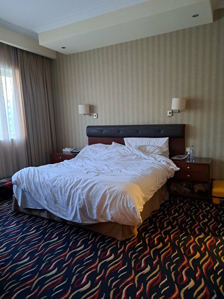 To begin with, this is our first trip. We arrived with the FanSan travel agency, arrived at the hotel ahead of check-in time, there were no rooms available, they said to wait 14 hours. The reception is somewhat Russian-speaking. Then we were offered to take new rooms on the 6th floor for a deposit. Which we agreed to by reading the reviews earlier. The luggage was delivered to the rooms, really new, clean, fresh. The air conditioner works perfectly, there are no comfortable smells. Rooms are cleaned daily change of towels, if necessary, bed linen. Replenishment of water, tea, coffee, sugar, cream. We needed an iron brought immediately, along with an ironing board, for the entire period of stay. Smoking is prohibited in the rooms. At first we walked in front of the entrance, then we realized that you can smoke on the pool, which is on the roof of the 6th floor, there are ashtrays at the sun beds, thank you for this separately. The pool is not large, but with a warm Jacuzzi. It helped us a lot, in hot weather and tired legs, after a day of walking. The food is average, you can always choose. The hotel is 200 meters from the metro, which is just super. One stop from the Emirates Mall , they sell alcohol for a note . There is a supermarket nearby, there is a general store 10 meters away, 24 hours. Cafes, restaurants, Barber shop .In general, we were very satisfied. Thank you very much.