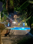 A small, quiet hotel located on the slope of a steep mountain. There is parking for cars. The entrance is very narrow and steep. Rooms are in separate houses (two rooms in a house). There is a kettle in the room. Upon check-in, free bottled water, tea, sugar, and coffee were found in the room, which were not updated the next day. However, a cooler, tea, and sugar are always available at the reception. coffee. The room is large, stylized as a cave. There is only one double outlet for the entire room. Decent Wi-Fi. The hotel has a microscopic swimming pool. The public beach at the tower is a 5-minute walk away. The stairs are very slippery in places. You need to remember the way so as not to get lost on the way back. The breakfast is quite decent, but without meat! But there are excellent fruits: peaches, plums, pears, and the traditional watermelon with melon. The staff is very friendly. In general, we are satisfied with the hotel.