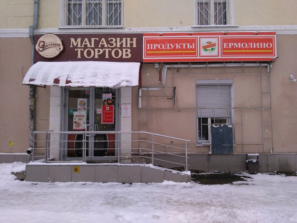 Один из магазинов сети "Ермолино" на 1 этаже, по ул.Победы. Продажа колбасных продуктов и полуфабрикатов, молоко, кефир, йогурт, сметана, печенье, зефир. Кто заботится о своем здоровье, тот вряд ли здесь покупает ввиду предоставленного ассортимента продуктов. В магазине расположены витрины-холодильники, стелажи, отпускает товар продавец. Удобно подъехать на автомобиле, парковка вдоль улицы Победы.