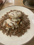 Был вечером, после 8. Заказал ужин. Салат цезарь, котлеты куриные с гречкой и чаем Ассам, десерт блинный торт с фисташкой. Порция салата небольшая, только на небольшой перекус, второе понравилось больше достаточно сытное. К чаю вопросов нет, а торт немного суховат. Что не нравится во всех шоколадницах так это столы неудобные, точнее ножки столов. Чего не было в меню сказали, мне это не помешало поужинать. Благодарю официанта Дарью за вежливость, аккуратность и заботу!