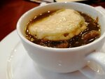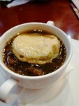 A very atmospheric place! I saw an indignant review here that there are a lot of onions in the Paris onion soup and a large piece of cheese is floating and I couldn't pass it by. Well, I tried this mess, I confirm: a lot of sweet fragrant onions (finally), rich broth and generous toast with melted cheese on top. Everything is classic. Very tasty!