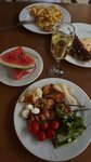 Very nice hotel! There are several wishes, perhaps the owners of the hotel will take into account. There was no snack at the late check-in, after a long drive I would like to leave light snacks. In May, when the air temperature was still not so high, it was comfortable everywhere without air conditioning, but in July it would not be comfortable to dine on the outdoor terrace. Everything is clean! The rooms are in good condition, brand new refrigerator, white linen, towels smell very nice. The food is excellent! Yes, there are no frills, but everything is very tasty and quite diverse. The beach is urban, sun beds can be rented in a cafe for a nominal amount of money. Walking along the embankment is a special pleasure! The place is beautiful!