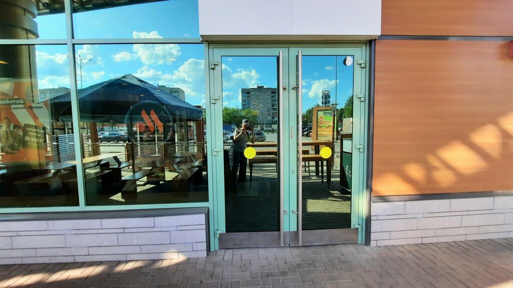 Большая автомобильная стоянка, рядом торговый центр, что очень удобно, находится по пути, проездом на Нижний Новгород. В туалете чисто, вода горячая есть. Достаточно быстрое обслуживание. Обычно столики протираю сам влажной салфеткой, так вот протер и здесь, салфетка осталась чистая. По еде это уже дело вкуса. Кофе капучино скажем не тот к которому я привык, но за это минусовать не вижу смысла, пирожок с вишней в "маке"был больше, мороженое опять же по сравнению с "маком" не то, слишком сладкой и " не гладкое" какое то )). Дочь брала чисбургер, ей понравился. В целом все достаточно вкусно, персонал вежливый. Рекомендую