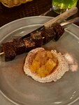Зашли отметить дату, поесть вкусно и не прогадали! Сервис приятно удивил; у входа встречают доброжелательные ребята, очень внимательные, проводили, подсказали по меню, уточняли нюансы и очень внимательные, без слов принесли вазу для букета, пустые посуды не стояли 😌 По кухне - все заказанные позиции были безупречно вкусные, свежие и подавались в указанное время официантом; курочка таяла во рту, а стейк из говядины был сочным и нежным, хлебушек был наисвежейшим, десерты топ 🫰🏼 По цене приемлемо 👍🏽