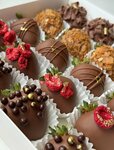 Нежный ягодный десерт, покрытый тремя видами бельгийского шоколада. В приготовлении используется свежая отборная клубника и ароматная голубика. Для украшения применяют шоколадную стружку, сублимированную клубнику и голубику (12 шт.)