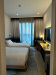 The hotel has an exceptionally pleasant experience! Excellent unobtrusive service, the reception staff is always ready to help, there is a girl who speaks Russian, but everyone understands English. Wi-Fi picks up everywhere and the signal is good everywhere. I would like to mention the fragrance in the hotel separately! Entering the building, you can immediately feel a pleasant smell, it is also on the floors and in the room. Hilton holds the bar! The rooms are well equipped, modern interior, smart sockets (but keep in mind the English connector, you need an adapter). The room is cleaned every day, water and tea/coffee supplies are replenished, the mini-bar is empty. There is a safe. The hotel has a la carte restaurants, starbucks in the lobby-prices are the same as everywhere else. The main restaurant is pleasant, spacious, there is enough space for everyone, there are tables outside, but there are queues during rush hour. The food is European, everything is delicious! The only negative is that flies are flying and there are a lot of birds on the street that steal food from the plate. The beach is great, there is enough space for everyone, the entrance to the sea is smooth, there are fish. There are a lot of seashells on the nearby beach. We saw a sea urchin. The territory of the hotel is small, but there is a beautiful embankment nearby. I recommend it, and I think we'll come back!