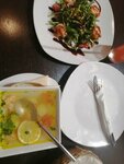 В обеденное время я с детьми зашла покушать . Еда не понравилась не мне, не детям. Подали суп картофельный с курицей, очень горячий, пришлось долго сидеть остужать, суп такое ощущение сварен просто на воде, а не курином бульоне. Перец фаршированный, я не знаю что был за фарш, возможно говядина, но тоже не вкусно, хотя говядину мы любим кушать. Понравился только Салат Цезарь. Само помещение в полумраке, считаю ,что в когда люди приходят к вам на обед, можно и ярче включить свет . А так, интерьер в восточном стиле, красиво